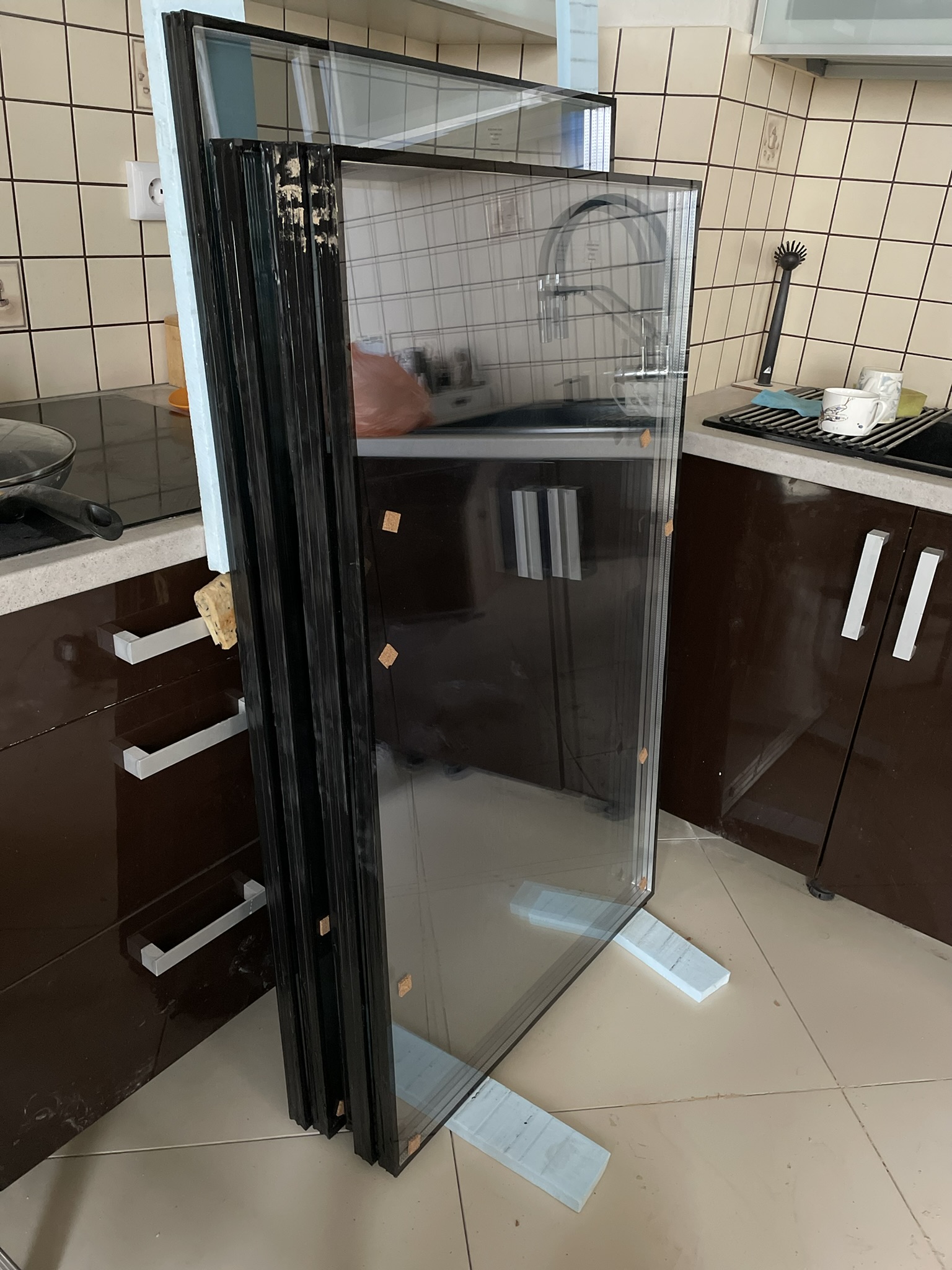 Демонтаж старой конструкции. Аккуратно снимаем старые алюминиевые рамы, не повреждая парапет и отделку.